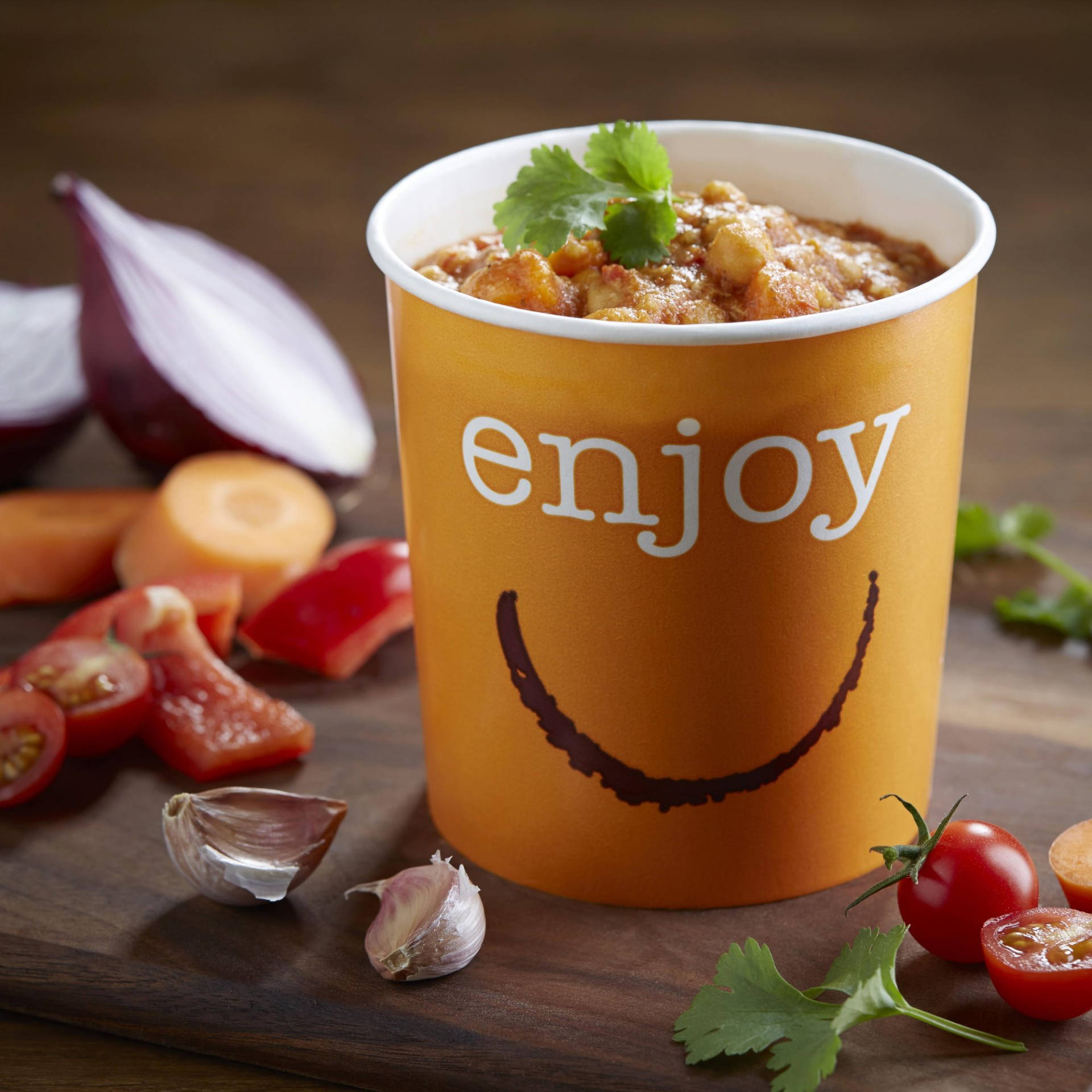 Nudimo vam papirnate posode Huhtamaki za juhe z zabavnim potiskom in voščilom Enjoy (Naj vam tekne), ki je dobrodošla popestritev vaše ponudbe. Za bolj umirjen izgled vam nudimo posode za juho iz rjavega papirja s pripadajočim pokrovom, ki omogoča ventilacijo, hkrati pa zadrži vonj, okus in toploto vsebine.